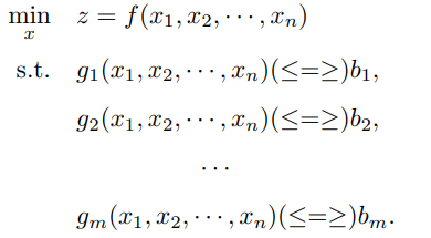 一个一般的非线性规划问题(NLP)可以表述为如下形式: