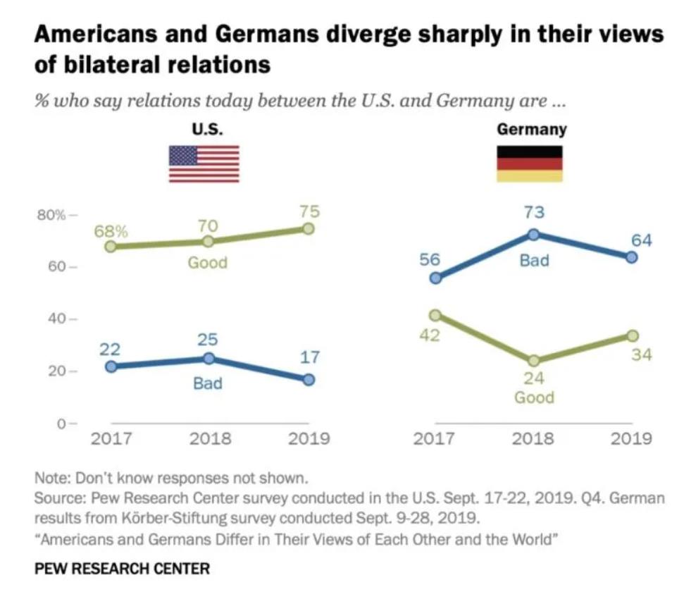 美、德两国民众对双边关系的看法截然相反