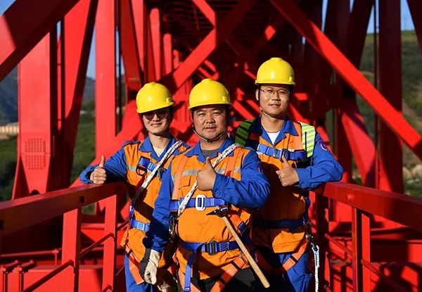 2022年1月18日,工作人员在中老铁路元江双线特大桥上合影。(新华社图片)