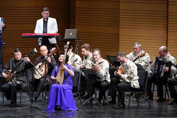 2018年5月30日,参演艺术家在上海合作组织成员国艺术节上演奏中国民乐《喜洋洋》。(新华社图片)