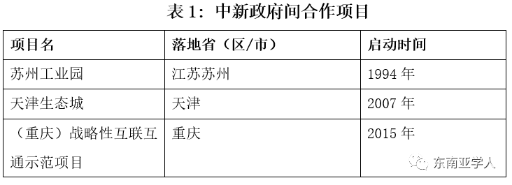 1994年以来,中国与新加坡已经开展了三个政府间项目,分别为苏州工业园、天津生态城和(重庆)战略性互联互通示范项目。项目选址逐步从沿海向西部内陆布局。当前,中国和新加坡共建立了4个副总理级的双边合作机制,除了涉及两国各领域合作的双边合作联委会(JCBC),其余三个分别为苏州工业园、天津生态城和(重庆)战略性互联互通示范项目三个政府间合作项目的协调理事会。这足以证明,中新两国对政府间合作项目的高度重视。