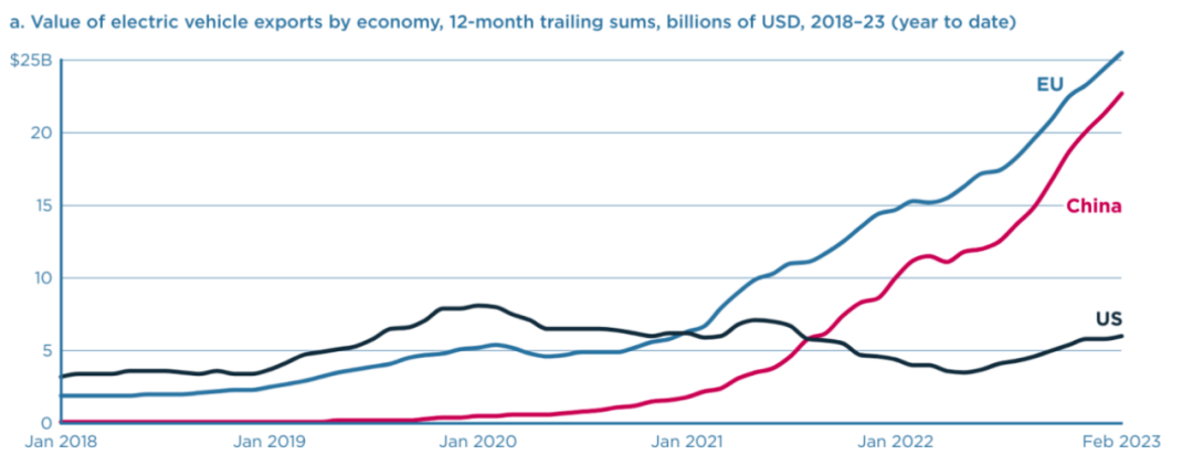 通过IRA,美国希望能打破中国在电动汽车领域的先发优势,不仅建立起强大的本土供应链,还要进一步与中国及其盟国争夺电动汽车的出口市场。