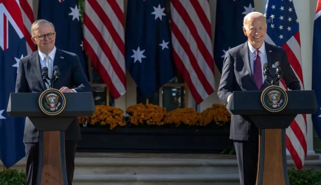 ▲ 当地时间10月25日,美国总统拜登与来访的澳大利亚总理阿尔巴尼斯在白宫举行会晤。图为双方举行联合记者会。图源:互联网