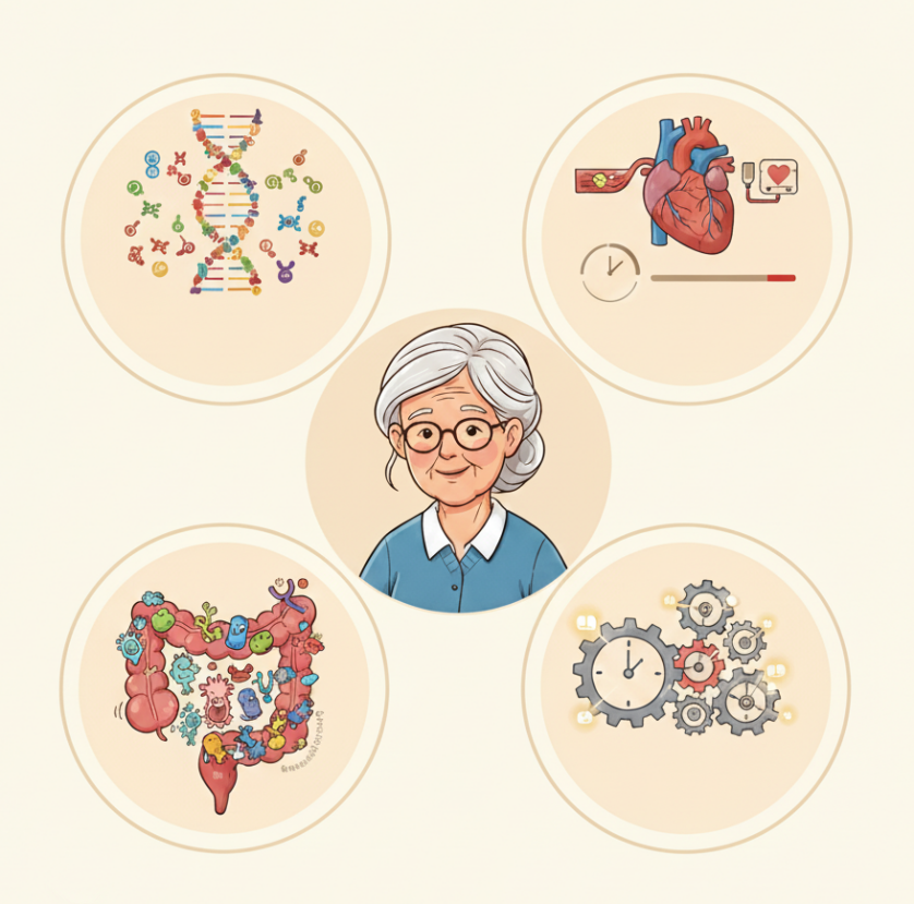 经过细致的研究,科学家发现Maria的长寿不是单一因素的遗传,而是身体多系统共同作用的结果: