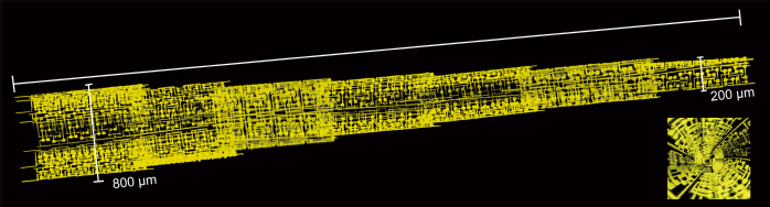 “纤维芯片”多层旋叠架构的三维重构荧光标记照片。