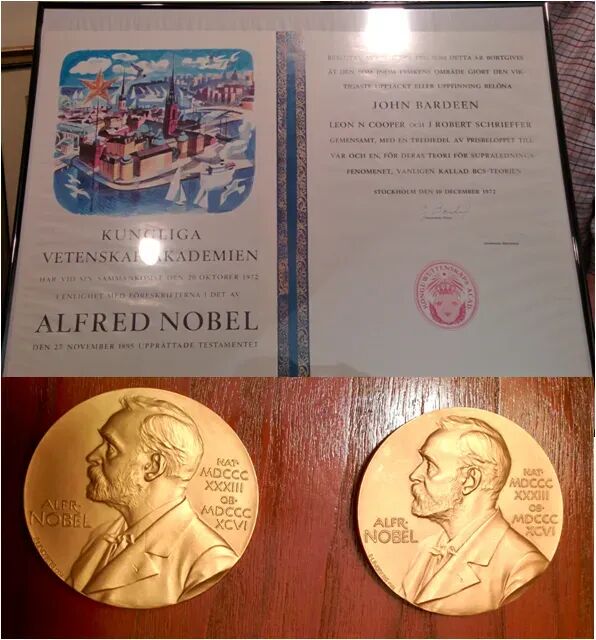 图表 5 巴丁的诺奖证书和两枚奖章