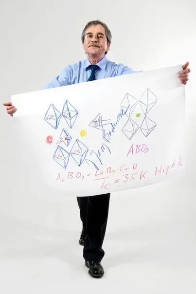柏诺兹展示La-Ba-Cu-O高温超导体结构