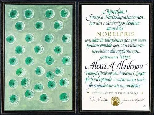 超导的最近一次获诺奖,是在2003年由阿列克谢.阿布里科索夫、维塔利.金兹堡获得,奖励他们在超导方面的先驱性理论工作,同年获奖的还有超流理论方面的安东尼·莱格特。这是超导理论研究的第二次获得诺奖,阿布里科索夫和金兹堡的理论与BCS理论不同,后者是基于量子力学的微观理论,而前者只是所谓的“唯象理论”。