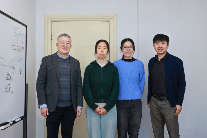 四位论文作者。韩斌(左一)和王佳伟(右一)为通讯作者,戴冰馨(右二)和吕丹凤(左一)为第一作者。受访者供图